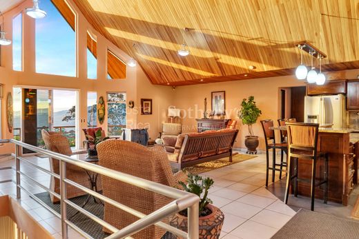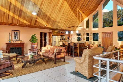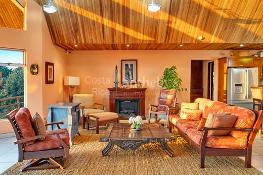 Built in Nature, San Ramón This property in San Ramón is up for sale, fully furnished, and it comes with all the perks of the surrounding area. Sitting at an elevation of 3,600 feet (1,100m) above sea level, the ocean view is stunning. You can enjoy watching ships arriving at the Puntarenas port and cruise ships setting sail during high tide. The location is central, just one hour from Juan Santamaría Airport (SJO), Costa Rica's main airport. Also, within an hour, you'll find the Puntarenas port. Within a 2-hour drive, you can reach Marina Los Sueños to the southwest and Fortuna de San Carlos to the north. This property consists of two lots, totaling 2.47 acres (10,011 m2) of land and 3,304 sqft (307m2) of construction. The high ceilings create a sense of spaciousness, especially in the living room. The open-concept kitchen lets you prepare meals with an ocean view. On the same floor as the living room and kitchen, you'll find the master bedroom. The master bedroom has ceilings almost 20 feet (6m) high and an incredible view from sunrise to sunset. Living in Costa Rica is all about the experience, and this master bedroom is well-designed with a huge walk-in closet, direct access to the laundry, and an amazing outdoor shower for a private experience. Additionally, on this floor, there's an open space that can be used as an office, extra bedroom, or entertainment area. On the lower level, there's a specially designed suite for visitors. It includes a full bedroom with a complete bathroom and a closet. There's a spacious living area that opens to a private terrace with a spectacular view of the gulf. The property has a special 1,500-gallon water storage system and a water heater available in all faucets throughout the house. The residential community where the house is located is exclusive, with only 24 lots and 12 houses. It has a controlled access main entrance for added security.