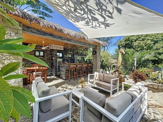 Discover this stunning Creole villa, impeccably renovated in 2021, combining traditional charm with contemporary sophistication. Nestled on a 2,850 m² lot, this property offers a serene retreat featuring a pool, pool house, massage pavilion, and lush tropical gardens with views of Sakatia Island.