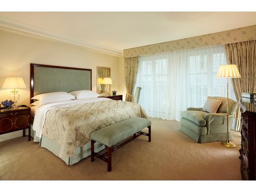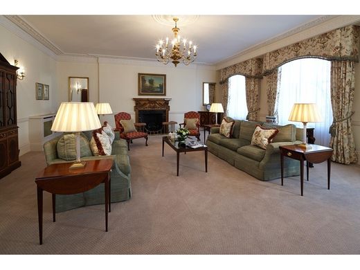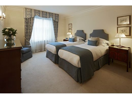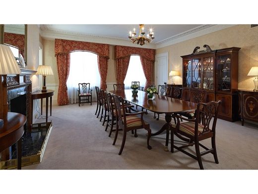 HYDE PARK GATE, Kensington DELUXE THREE-BEDROOM SERVICED APARTMENT The Deluxe Three Bedroom Park View apartments offer ambassadorial living within this sumptuous Victorian residence. This opulent apartment is set on the second floor of the property with a spectacular reception room leading to generously sized living and dining rooms with amazing views over Hyde Park. The Main Bedroom is en-suite with double wardrobes. The Queen and Twin Bedrooms are also en-suite offering ample wardrobe space. Additionally, the apartment feature a utility room and a dedicated office space. A true masterpiece, our Hyde Park Gate palace radiates historic charm throughout all seventeen stately apartments with authentic period features and exquisitely proportioned interiors. Looking out across the leafy expanses of Kensington Gardens and Hyde Park, these grand private residences available for six months or more were built to accommodate London’s elite.