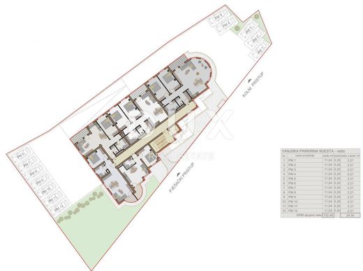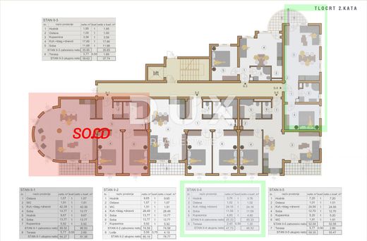 We are proud to present a new construction project located in an interesting location in the city of Pula. Namely, the building is located only a 3-minute drive from the city center, and it is also only a 5-minute drive from the famous tourist resort of Verudela. The building is positioned in a quiet location, without a lot of traffic in the vicinity of its contents necessary for everyday life. The building consists of several residential units that extend from the ground floor of the building to the 3rd floor. Next to the building, there are parking spaces in the garden of the building, as well as in the building's garage, while future apartment owners have the option of choosing a parking space for their tin pets. DESCRIPTION OF THE APARTMENT; Thus, in this building, we are proud to present an apartment on the 2nd floor, which consists of a total of 46.53m2 of NET usable area. The apartment is organized so that the entrance to the apartment has a corridor that separates the apartment space into a private space and a space for daily life and entertainment. Thus, in the private area of the apartment there is 1 spacious bedroom, one larger bathroom and a smaller storage room. The space for daily life is designed as a larger "open space" space, and there is a spacious kitchen, a comfortable dining room and a larger living room. This entire space is flooded with natural light that penetrates into the apartment through large glass walls. From the living room there is an exit to the outdoor terrace. * Customers have the opportunity to choose to buy a parking space, either in the building's garden or in the building's garden; - Parking lot in the building's garden; €8,290.00 - Parking in the garden depending on the square footage: from €21,670.00 to €49,390.00 - Storage room depending on the square footage; from €10,430.00 to €13,990.00 TECHNICAL AND ADDITIONAL DATA; * Each apartment in the building will be equipped with electric underfloor heating * High-quality PVC joinery will be installed * Facade insulation 10 cm * The building has an elevator that connects the garage to each floor of the building * High-quality ceramics will be installed on the floors (for now, customers have the option of influencing !) * The possibility of moving in is planned for the beginning of 2025 LOCATION DESCRIPTION; The building is located in a quiet location in the city of Pula, only a 3-minute drive from the city center, and only a 5-minute drive from the famous tourist resort known as Verudela. On Verudela you can find a large number of rocky and stony beaches with crystal clear sea, and in the immediate vicinity of the building there are numerous restaurants, cafes, as well as a market, next to the building there is also a small shop, as well as everything you need for a safe and peaceful everyday life of modern man. In short, this is a property worthy of your attention, which can serve as an ideal option for a private investment or as an option for a real family home. For any additional questions, necessary information or wishes to organize an appointment to view the location and the current construction status, feel free to contact us! Dear clients, the agency commission is charged in accordance with the General Business Conditions: www.dux-nekretnine.hr/opci-uvjeti-poslovanja