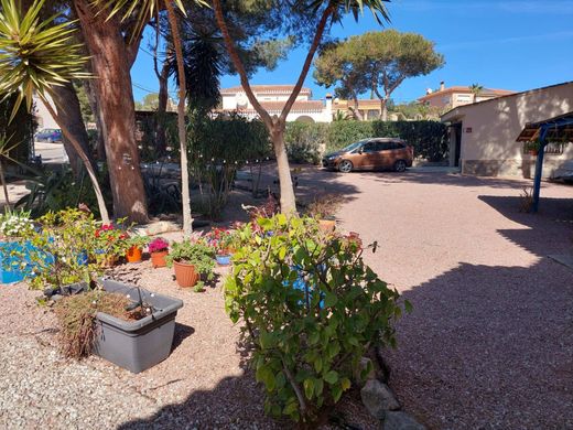 El Moncayo Properties offers for sale this wonderful independent villa with a large plot just five minutes from the La Finca golf course, in Algorfa.~~It consists of a large plot of 2150m2 and a single-story house with a constructed area of 286m2 distributed in the following rooms:~~- Large independent kitchen, equipped with appliances, with an adjoining room used as a laundry room and a pantry.~~- Large furnished living room, with fireplace and high ceilings.~~- Five large bedrooms, all with built-in wardrobes and double and queen-size beds. It also has a sixth room enabled as a small living room and the possibility of a room attached to the kitchen, currently it is enabled as a laundry room.~~- Through the master bedroom we access a fantastic terrace with views of the pine forest.~~- Four complete bathrooms, three with a shower tray, sink, closet and toilet and one with a bathtub, sink and toilet.~~The house has 8 built-in wardrobes, split air conditioning in all rooms, mosquito nets, barbecue, a small covered parking space and a closed garage separate from the house, with a storage room.~~There is also an unfinished swimming pool.~~Located in the quiet Castillo de Montemar urbanization, just 15 minutes from the coast, just 3km from the La Finca golf course.~~A quiet place to live all year round!!~~Call us and come visit it!!