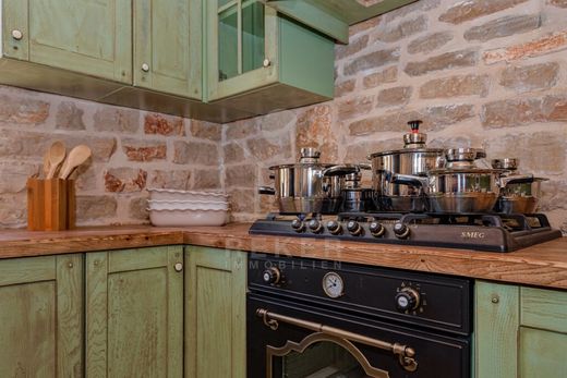 Heated pool and summer kitchens: Four authentic stone houses This fairytale offer includes a spacious 8,543 m² plot with four beautiful stone houses, which together offer a living space of approx. 280 m². The untouched nature, bordering the UNESCO-protected Stari Grad plain, which surrounds the property, gives the peace and privacy you have been looking for for so long. The highlights include not only the luxurious and stylish furnishings and the 28 m² heated pool, but also the tavern with wine cellar and the fabulous, Mediterranean garden. It is just 800 m to the sea, and the town center is about 4 km away. ~