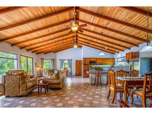 Discover this real estate opportunity in Atenas, Costa Rica, offering the privacy and natural surroundings of Atenas' wilderness. The property consists of a main house and a guest house, both on a 2.5-acre lot with stunning canyon views. It also includes an adjacent separate 2.5-acre lot. This property features panoramic views towards Grecia and the surrounding mountains and is located in a gated community just a few minutes' drive from downtown Athens. Main Home and Spacious Spaces The main house offers spacious rooms, a main suite with a security room, an open floor plan with high ceilings that open to a porch and a well-maintained garden, with a pool and a terrace perfect for entertaining and enjoying outdoor living in Atenas. Private Guest Home In addition, the property includes a private guest house with one bedroom and one bathroom. There is also additional space available next to the forest for future construction and ample space on the additional lot for additional projects. Includes Furniture and Appliances The main house was built in 2006, and the guest house was built in 2015. Both homes are equipped with a solar hot water system, and there is a private well on the property. The property is sold with all furniture and appliances included. Please note that the translation provided is based on the previously optimized description.