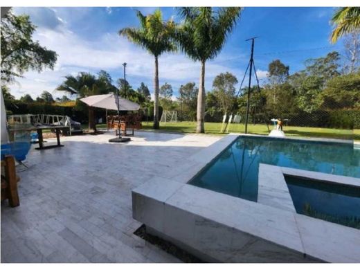 LUXURY COUNTRY HOUSE FOR SALE WITH ELEVATOR IN LLANO GRANDE, CABECERAS SECTOR This house is distributed in 2 levels, each with a height of 11 meters, in a lot area of 3,350 meters and a constructed area of 1,568 meters, On the first floor You find the main kitchen with clothing room, the technical and useful rooms, 3 bedrooms each with bathroom, desk and terrace, 1 external auxiliary room with dressing room and private bathroom, for a total of 4; Also social bathroom for independent men and women with automatic sensor taps, black marble and suspended toilet, auxiliary kitchen also in black marble and automatic sensor taps, all in luxury and high-end finishes; office with independent access which has a room with a meeting table, a large social area where 2 more meeting rooms can fit; The first level also has a dining room, billiards, movie room, main room, 2 independent bedrooms for employees, each with a bathroom and closet, which are located in an exterior module of the house, covered parking for 5 cars, and space for approximately another 15 vehicles, illuminated soccer field with invisible mesh, swimming pool with swimming lane, shower, fruit trees and beautiful gardens. On the second floor you find the main bedroom with a very large bathtub and shower, dressing room with armored door and glass, balcony, 4 more bedrooms all with balconies, dressing room and private bathroom, library, living room, an oratory, multipurpose room. The house has an internal elevator, all the floors of the property are made of large-format white Carrara marble, the windows are thermo-acoustic, the house is domotized, central air conditioning in the cinema room and the master bedroom, acoustic insulation in the floors. and walls, ozone filtration system for the whole house, making the water drinkable and skin-friendly, a total of 14 bathrooms. This is without a doubt one of the best houses you can get at that value, contact me! I'm sure you'll love it.