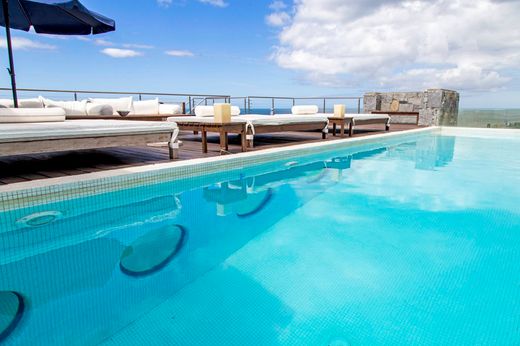 Excellent house designed and projected by Architect Martin Gomez. The house has a spectacular panoramic view of the sea. The construction quality is excellent and it has high-end details. The house is built on 3 floors: on the upper floor is the modern, open-design kitchen that is integrated with the large living room. From the living room one has access to the Deck Terrace and the pool where you can appreciate all the beauty of the bay. The living room is surrounded by a balcony that allows access to the terrace without going through the house. On the ground floor there is the Master suite and the distribution hallway that gives access to the other four suites. In the basement level with the internal garden there are two Guest rooms with views of the garden and independent entrance. Also at the front are the utility room, laundry room and 2-car garage.