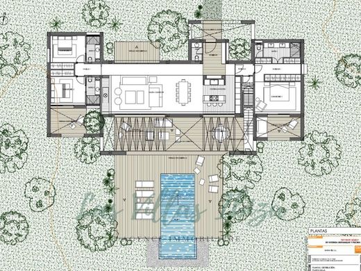 - Planned layout includes a living room with kitchen, 3 large double bedrooms with individual bathrooms, a powder room, porch, three terraces and a swimming pool.