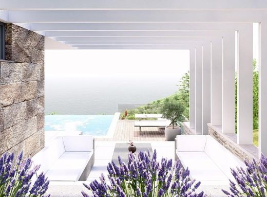 The house consists of two spacious floors with magnificent sea views. The first floor features an open-plan living area of 50 square meters with a dining room and kitchen, all opening up through large glass doors onto a spacious 25 square meter terrace. On the ground floor, there is one bedroom with an en-suite bathroom, which can be converted into a study. Additionally, the ground floor houses a wellness area.