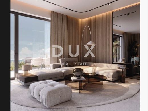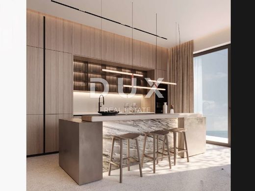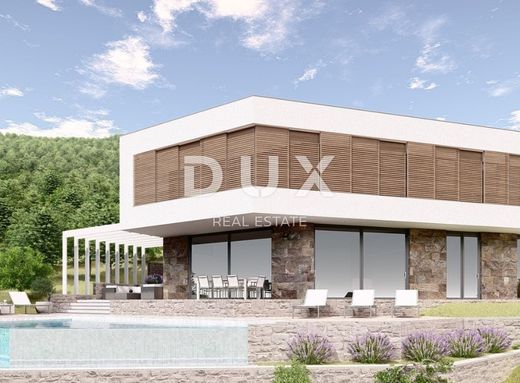 We are mediating the sale of an architectural masterpiece - a beautiful modern villa near Ičići beach. This villa is located on the Opatija Riviera and is a rarity on the market. It is a fantastic villa measuring 280 square meters, and is located on a plot of 1000 m2, which is oriented towards the sea in relation to the neighboring plots. The villa stands out above all for its excellent location: it is located just 200 m as the crow flies from the beach and the famous Lungomare promenade by the sea that connects Opatija and Lovran, while the drive to the sea takes only 1 minute, and the return walk takes only 5 minutes. The house consists of two spacious floors with beautiful views of the sea. On the first floor there is an open space living room of 50 m2 with a dining room and kitchen, and the entire space opens through large glass walls onto a large terrace of 25 m2. On the ground floor there is one bedroom with an en suite bathroom, which can be converted into a study. In addition, there is also a wellness area on the ground floor. A beautiful modern staircase leads to the second floor of the house where there are 3 bedrooms with en suite bathrooms, and each room has a priceless and unobstructed view of the blue sea through large glass walls, which, in addition to guaranteeing a beautiful view, offer warmth and light throughout the year. Each room has access to a beautiful 25 m2 terrace, which follows the villa on the south side. In addition, panels in wood tones that can be opened and closed offer complete privacy and protect from the bright sun on warm summer days. The house has a large 40 m2 infinity pool with a sunbathing area, terrace and a large area for socializing. With this beautiful designer villa, it is important to highlight the following: - low-profile schuco carpentry - first-class Italian ceramics - first-class sanitary facilities - large open sliding walls - panoramic sea view from every room In front of the house there is agricultural land owned by the state, which forever guarantees privacy, peace, greenery and an unobstructed panoramic view of the sea. In addition, the house is surrounded by a beautiful Opatija forest, so it is perfect for a peaceful life, and within easy reach of all the facilities offered by Ičići, the most beautiful suburb of Opatija. The house is being sold fully furnished with new designer furniture from Italy and will be ready to go. The villa also comes with 2 parking spaces. The investment is of a local character, and therefore safe.
