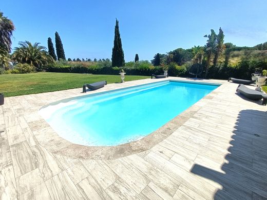 Sale 8 room villa of 300m2 on flat and landscaped land of 2500m2 sea view and access to the sea on foot This sumptuous contemporary residence with generous volumes, absolute brightness, and its prime location, will immediately seduce you with its living space of 130 m2 served by 3 terraces, one of which is 45 m2 covered with summer kitchen, another is 25 m2 transformed into a veranda, and the last of 25 m2 into a veranda. The jacuzzi area can be transformed into a master bedroom on one level. The 20 m2 scullery perfectly complements the functionality of the 180m2 of the ground floor. Upstairs, 4 bedroom suites including a master suite with shower room and bath. Numerous annexes: workshop of 40 m2 including a laundry room, wine cellar, summer shower, toilet and swimming pool engine. A two-car garage and carport of 45 m2. 10x4 swimming pool, canal de provence, automatic watering. Your contact 06 10 840 269 and 04 94 65 12 29