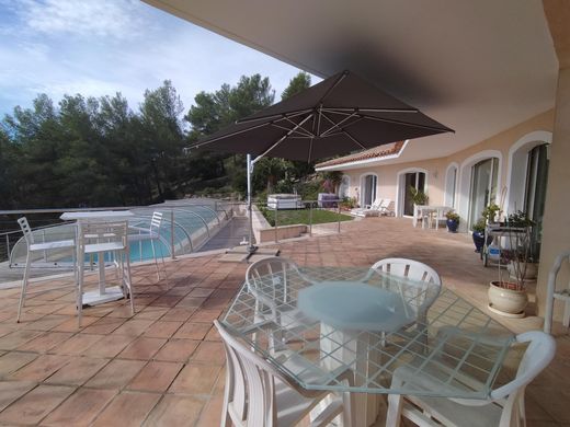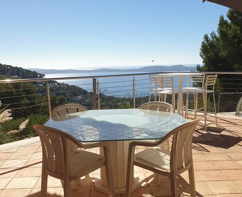 Sale villa 6 rooms on a plot of 1490 m2 in Carqueiranne This magnificent property of approximately 220 m2 welcomes you on a plateau composed of a huge kitchen and back kitchen, a living room with fireplace and a living room, bay windows for all rooms, overlooking a breathtakingly beautiful sea view. You will be hypnotized by this place of serenity in absolute calm Two bedrooms with their bathroom and bath. On a second plateau, a 90 m2 apartment for family and friends with a kitchen and living room with sea view terrace, two bedrooms and a bathroom. In a dominant position with sea view and green space, this little corner of paradise accentuated by a large terrace of 250 m2, access to the covered swimming pool (12x4), allows you to arrange several spaces in the sun of conviviality and absolute discretion . Landscaped lot, large garage and plenty of storage space. Exceptional property. Contact 04 94 65 12 29