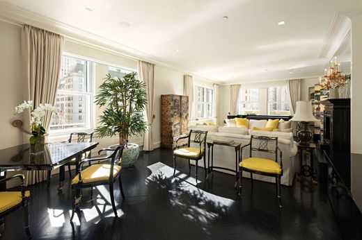This glamorous 8-room residence is ideally situated at the prestigious Sherry Netherland Hotel. Wrapping the southwest corner, this sun-flooded apartment offers spectacular views over Central Park and the Grand Army Plaza, showcasing a dramatic backdrop unique to New York City living. The triple mint renovation reflects a sophisticated aesthetic that is both elegant and refined. The striking and impeccable renovation incorporates state-of-the-art technology with traditional architectural elements. An impressive Gallery with southern exposures opens to a lovely corner Living Room with breathtaking views of Central Park and a sumptuous Library. Beyond there is another Library/Dining Area and a fully equipped Kitchen. A Powder Room and coat closet are conveniently adjacent. The very private and spacious Primary Bedroom Suite is flanked by two original Art Deco marble bathrooms each with a sizable windowed Dressing Room boasting Park views and tremendous closet space. Two additional bedrooms with marble baths and ample closets are situated in a separate wing. These rooms have open and sunny southern exposures. Two decorative fireplaces, beautiful hardwood floors and sophisticated lighting and music systems further distinguish this quintessential New York view apartment. This most delightful residence is the ultimate abode for grand living and entertaining. The Sherry Netherland Hotel is located at the corner of Fifth Avenue and 59th Street in the heart of Midtown. This central and sought after location is easily accessible to Central Park as well as Manhattan’s best restaurants, shops and museums. Services and amenities offered by this iconic white-glove prewar cooperative hotel include full concierge services, 24 hour doormen and elevator attendants, daily housekeeping and evening turndown services, valet parking, room service provided by Harry Cipriani, a fitness center, barber shop and beauty salon. A monthly assessment of $3,020.64 is payable through August of 2027.