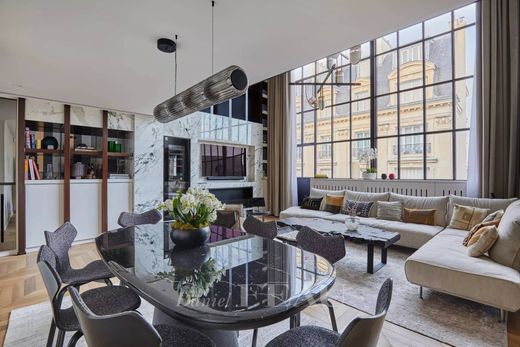 This magnificent 140 sqm fourth-floor duplex apartment in a prime location a stone’s throw from leafy Parc Monceau has been meticulously renovated throughout in a contemporary style, it includes a double living/reception room bathed in sunshine thanks to an immense floor-to-ceiling window and soaring ceiling, a fully fitted and equipped kitchen, a suite with a dressing room, a shower room and a wc, a utility room and a guest wc. The upper floor comprises a mezzanine with an equipped fitness area, a second bedroom with fitted storage space, a shower room with a wc, and a dressing room.