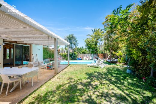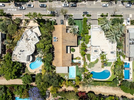 Prime location between Mediterranean Sea and golf course. Two independent units: one with swimming pool & garden, second with jacuzzi & garden. Functions as single large villa or two private residences.