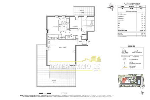 VILLENEUVE LOUBET, close to amenities and the sea, new prestigious residence with roof top swimming pool, splendid 4-room ROOF VILLA of 113m² composed of a living room with open kitchen of 60m² opening onto a TERRACE of 100m² facing SOUTH, magnificent VIEW SEA and MARINA, 3 bedrooms, 2 bathrooms and possibility of underground parking and cellar at extra cost.