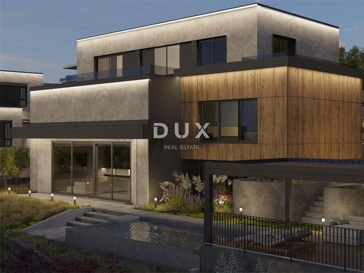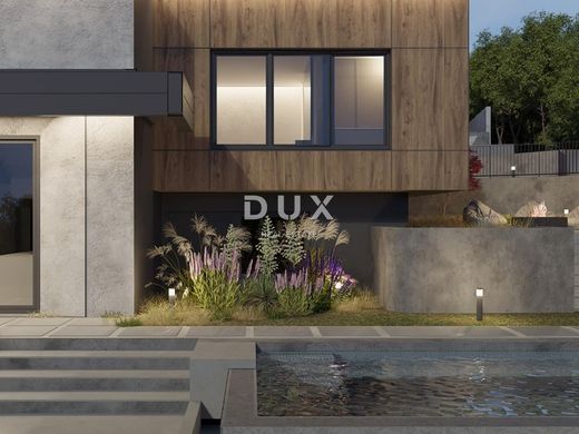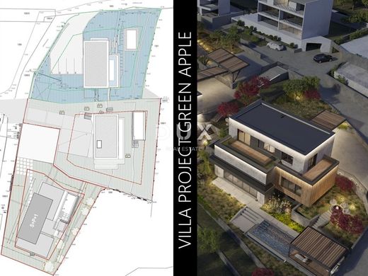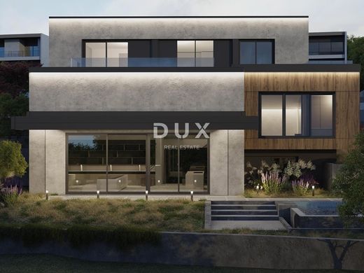 We present a villa above the very center of Opatija, just 470 meters from the sea, with a panoramic view of the sea, islands and mountains, with a beautiful large garden of 930 m2 and a swimming pool. It is a beautiful luxury villa on 3 floors, and consists of a spacious hallway, a beautiful and illuminated open space living room that communicates with the kitchen and dining room, from which a magnificent view of the sea can be seen through the glass walls. A large staircase leads to the 2nd floor with 3 luxurious bedrooms, each room is south-facing and has a beautiful view of the sea. It is important to point out that the master bedroom with en suite bathroom extends over the entire first floor and has a loggia of 20 m2. The special feature of this property is its quality construction and exceptional location near the center of Opatija, the Lungomare promenade, the Summer Stage and all the accompanying facilities. The villa will be built surrounded by lush greenery in a quiet cul-de-sac and will thus ensure privacy and comfort along with a wonderful experience of the Kvarner Bay. The villa is located just a 1-minute drive from the center of Opatija and Slatina beach, thus ensuring a perfect stay and life in the beauty of the Adriatic - Opatija. Dear clients, the agency commission is charged in accordance with the General Terms and Conditions.