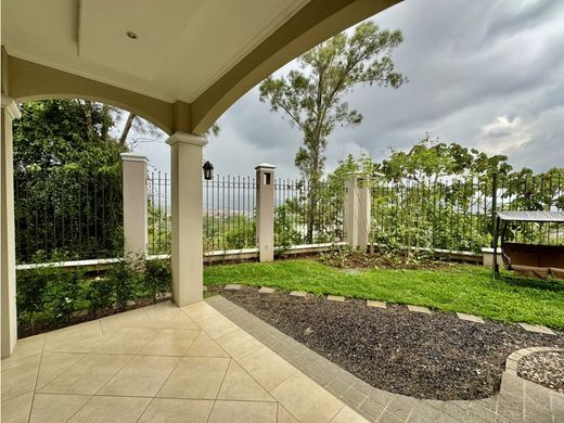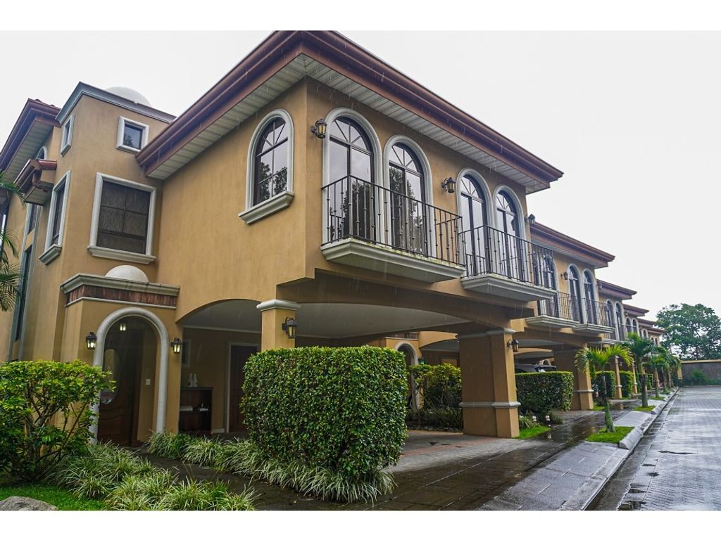 Spacious house for sale in a small condominium of only 6 homes with 24/7 private security. This condominium offers double security because it is located within another prestigious and modern condominium with cobblestone streets, underground wiring, single access control, and 24/7 security. It is located in an area of very high residential and commercial value, close to renowned educational centers, schools, universities, supermarkets, entertainment centers, health centers, shopping centers, malls, and general commerce. This beautiful colonial-style house is characterized by its practicality and spaciousness. It features a large and beautiful garden with spectacular views, as well as a large, multifunctional third level. It is a three-story house, built with solid concrete construction, independent exterior walls, large windows that provide plenty of light and natural ventilation, porcelain floors, and high-quality luxury finishes. First floor: - Covered garage for 2 vehicles and 2 more without roof - External storage area and another internal storage area - Half guest bathroom - Cozy living room with wood and brick contrasts with fireplace and small storage room - Social area consisting of a living room with fireplace, dining room and kitchen with large sliding doors that open to a covered terrace and a rear and side patio in green with spectacular panoramic views of the mountains. - The kitchen has wooden cabinets, granite countertops and a large breakfast bar. It includes a built-in oven, ceramic cooktop, microwave oven, grease extractor, refrigerator and dishwasher. - Pantry - Bar area - Comfortable laundry room with patio for clothesline. Includes washer and dryer - Maid's room with full bathroom. Second floor: - Large living, TV or office area - Very spacious master bedroom with double walk-in closet and private bathroom with shower, jacuzzi tub and double sinks. The bedroom and its bathroom connect to a large terrace with a beautiful panoramic view. - 1 secondary bedroom with full bathroom - 2 spacious secondary bedrooms with wall closets and a shared full bathroom with 2 separate toilets - Linen closet Third floor: - Large living area with balcony and an additional bedroom with full bathroom. The floor can function as a guest room, as a large office or work area, art workshop, gym, movie or music area, etc. * Double condominium security (24/7 guardhouse at the entrance to the Colinas Montealegre Condominium and 24/7 monitored security in the sub-condominium where the house is located) * Activity room with a BBQ area for common use. * Sold for investment with a rental agreement acquired in 2024