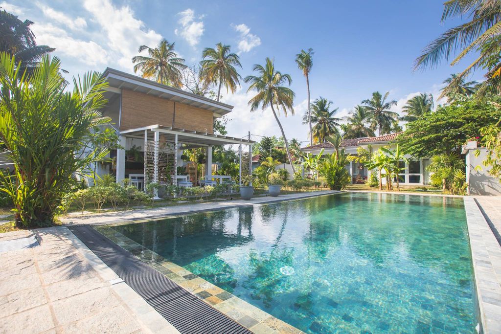 Discover Denuwala Boutique Hotel, a hidden gem in the heart of Midigama, one of Sri Lanka’s top surfing destinations. Surrounded by lush tropical greenery and swaying palm trees, this exclusive boutique hotel offers a perfect blend of luxury, privacy, and tranquility, making it an ideal retreat for surfers, couples, and travelers seeking a serene coastal escape. Designed by a renowned Brazilian architect, the hotel features four unique segments, each with its own charm and character. Guests can choose from a luxurious two-bedroom villa, a spacious bungalow with two suites, a romantic honeymoon suite, or a fully equipped kitchen with staff quarters. With five elegantly designed bedrooms, each boasting en-suite bathrooms, air conditioning, and ceiling fans, Denuwala Boutique Hotel promises comfort and sophistication in every detail. Sustainability meets luxury with solar-powered hot water systems, ensuring an eco-friendly stay. Outside, the 0.37-acre tropical paradise is home to a refreshing swimming pool, lush gardens filled with native wildlife, and peaceful surroundings designed for relaxation and rejuvenation. Located just steps from Midigama Beach, Denuwala Boutique Hotel is at the heart of Sri Lanka’s Downsouth surf scene, offering easy access to world-class surf breaks and a vibrant coastal atmosphere. Explore the nearby beaches of Ahangama, the historic Galle Fort, and the whale-watching hub of Mirissa, all within a short drive. Experience the best of Sri Lankan hospitality at Denuwala Boutique Hotel, where luxury meets nature in a tropical paradise. Searching for “Luxury Boutique Hotels in Midigama,” “Beachfront Villas in Sri Lanka,” or “Surf Hotels in Down South Sri Lanka”? Your dream getaway awaits