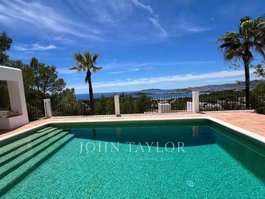 Parking is convenient with a covered area for two cars and one motorcycle. This exceptional home provides a perfect blend of luxury, comfort, and exclusivity, making it an ideal retreat for a memorable stay in Ibiza.