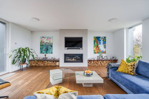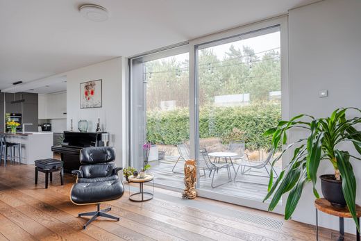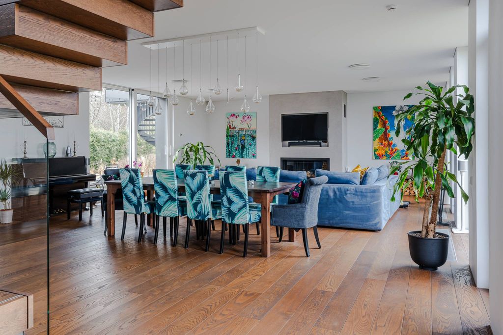 One of the most energy-efficient private houses in the "Riverside Project" development is located on the banks of the Lielupe River in Priedaine. This house is not just a place to live, but a philosophy of life, where the love of nature and the benefits of technology come together in harmony. The total area of the property is 442 m2, which includes terraces and 322 m2 of living space. Throughout the house there are many open spaces and large windows that bring light and spaciousness into the room. On the ground floor there is a spacious living room combined with a kitchen area, a study, a guest bathroom, a storage and utility room, a garage. A beautiful glazed staircase with wooden elements leads to the second floor - an open space family lounge, two children's bedrooms, a bathroom and the master bedroom with a private dressing room, bathroom and access to a spacious terrace with stunning sunset views. The interior features Tom Dixon light fittings, Matthew Williamson wall papers, decorative plasterwork from Apdares Studija, bespoke furniture and kitchen, 100 year old wood wall panelling in the master bedroom. The house has geothermal heating, a heat recovery system, underfloor heating and solar panels. The rooms can be customised with lighting and heat control via an app - every corner seems to be designed for a smart, eco-friendly and economical lifestyle. The beautiful garden has been designed by landscape architects Galantus, who have created a work of art out of the earth and greenery. The garden is not only a decorative landscape, but also a living oasis complementing the natural beauty of the surroundings. Exquisite architecture, sophisticated interior design and romantic garden landscapes are the hallmarks of this family property!