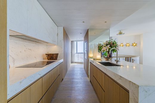 This luxury penthouse has recently been renovated to the highest standards by a renowned architectural firm, who have paid meticulous attention to the quality of the woods and natural materials used, in a soft color palette and refined design. Notably, the entire home features large windows that allow for breathtaking views from almost every room. The emphasis on creating a serene environment of scenic beauty is reflected in every detail, offering an oasis of tranquility and understated elegance.