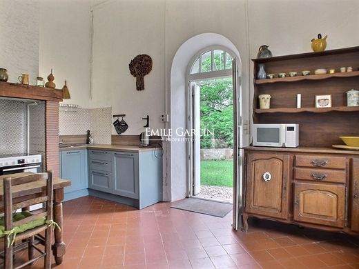 Located at the entrance to the Cévennes Natural Park, in the village of Saint-Ambroix, this 19th-century castle sits on more than a hectare of magnificent leafy grounds with a bamboo grove and private access to a small beach bordering the Cèze. First level: three spacious bedrooms with private bathrooms, including a room that can accommodate a family of four. Second level: four smaller bedrooms and a shower room. 14 x 7m swimming pool under a dome (partly open). BBQ, pool table, pets allowed. Available to let all year round.