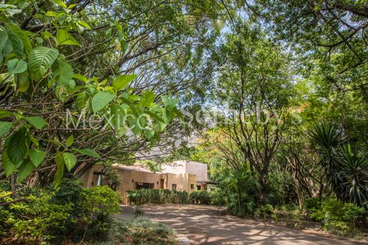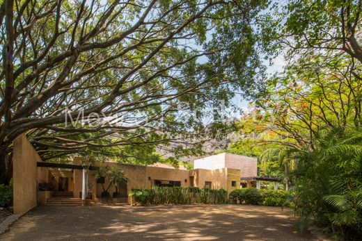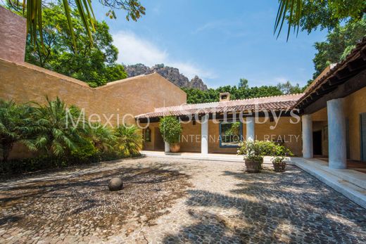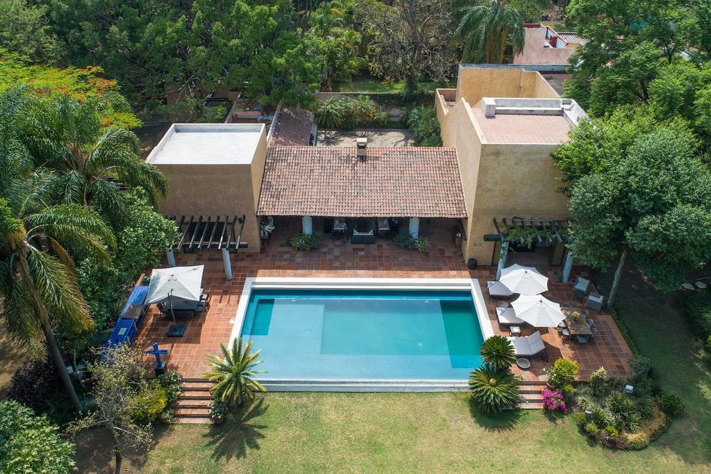 Casa Sol y Luna in Tepoztlán is an idyllic retreat that perfectly combines luxury and nature. Situated on a vast 8,000 m² property, the house offers stunning views of the majestic Tepozteco. The property is surrounded by lush vegetation, with tall, leafy trees providing shade and freshness, creating a serene and relaxing environment where the sound of birds accompanies each morning. The house’s design, by renowned architect Diego Villaseñor, reflects a perfect integration with the natural surroundings, using materials and shapes that blend seamlessly with the landscape. The construction spans approximately 3,000 m², distributed among eight spacious bedrooms, each with its own private bathroom, ensuring comfort and privacy for all residents and visitors. The exterior of the house is as impressive as the interior, featuring an outdoor living room and various social areas, including outdoor dining spaces ideal for enjoying meals in a natural setting. These areas offer multiple options for relaxing and socializing in an open-air environment. Inside the house, a TV room provides a comfortable and modern space for entertainment, while a central patio with a fountain creates a tranquil atmosphere and harmoniously connects the bedroom areas. The pool is a perfect spot to relax and enjoy the natural surroundings, while the paddle tennis court offers an option for active recreation. For a holistic wellness experience, the property includes a temazcal, where traditional purification and relaxation rituals can be performed, further enriching the experience of living in this paradise. For events and gatherings, the house features a large hall that previously functioned as a tequila salon, offering a versatile and elegant space for any type of celebration or social activity. In addition to the bedrooms, the house includes two service quarters and a chauffeur’s lodge, facilitating accommodation for support staff, and an independent caretaker’s house. The property’s infrastructure is exceptional, with two cisterns and two water wells ensuring a continuous and reliable supply. An efficient hydropneumatic system and a boiler that keeps the pool at a pleasant temperature complete the amenities of this residence. Casa Sol y Luna is a place where tranquility and luxury meet, offering an exclusive lifestyle in one of the most beautiful and magical destinations in Mexico.