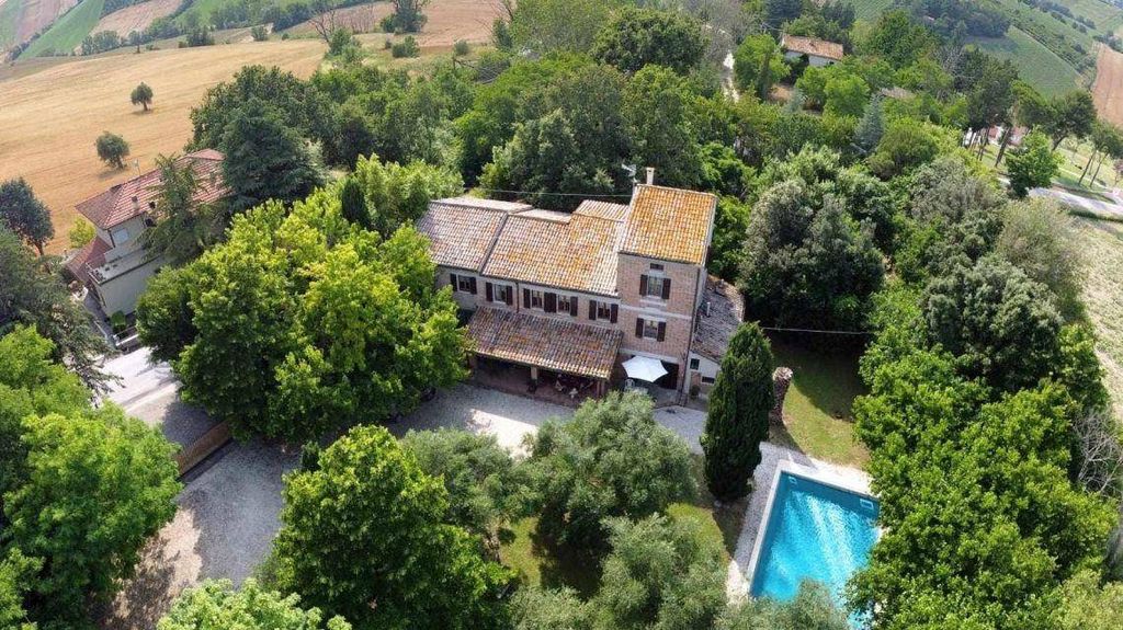 Just 15 km from Senigallia with its splendid Velvet Beach, inside a park of 5000 m2 of land completely fenced with a majestic automatic entrance gate, splendid stone farmhouse of approximately 500 m2 currently used as a holiday home divided into 4 apartments. The house sits on 5,000m2 with gardens including a swimming pool, parking for 8 vehicles and over 90 mature trees including 10 olive trees, 6 palm trees, 4 cypresses and 20 mulberry trees! The total number of rooms is 17 (actual rooms not bedrooms bed) 3 kitchens and 4 bathrooms and a large porch. The view is wonderful. It changes almost monthly depending on the crops being grown. There is wheat alternating with sunflowers and you can see the Lacrima vineyards on the hill in front of us. We are right on Provincial Road 13 so there are no dirt roads to travel on, no dust, no gravel. City gas, city water, irrigation system, air conditioning, gas heating with 2 separate boilers and excellent internet reception.
