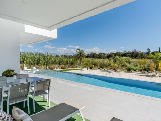 Magnificent villa with contemporary architecture recently built with a beautiful outdoor area where a beach with sand surrounded by the pool is recreated, and overlooking the golf course.