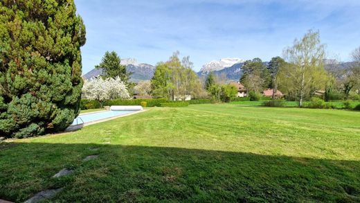 For sale, 2 steps from the edge of Lake Annecy, a beautiful property of 244m2 of living space, on a wooded park of 2079m2 with swimming pool and view of the Tournette massif and the surrounding mountains. On a full basement with double garage, storage spaces, boiler room and cellars, the habitable part on one level consists of a large living room of 46m2, a kitchen area of character, 3 large bedrooms including a Master Bedroom, a bathroom and toilet Upstairs: a large bright room of 56m2 that can be arranged as you wish, a bathroom and a bedroom. Let yourself be seduced by this house offering great possibilities in an exceptional setting by contacting us without delay.