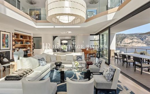 Enjoy the Villa perched on the slopes of Cap Ferrat with exquisite views of the Mediterranean Sea. The contemporary residence located a few steps from the village and port of Saint Jean Cap Ferrat, offers an exceptional setting for entertaining. Find spacious rooms in the villa, with high ceilings, magnificent views and contemporary decoration. The villa consists of 4 floors with 1 master including private lounge, terraces and office, 3 suites, and a smaller bedroom for staff, you can enjoy a cinema room, a magnificent open kitchen, a gym and library.