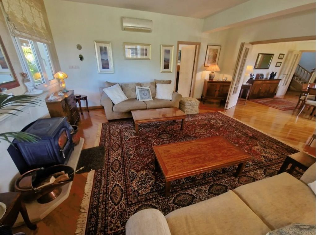 Discover serenity in this remarkable villa nestled in Laneia, boasting a vast 2361sq.m. land and a 270sq.m. residence. The ground floor invites you with a spacious kitchen, two dining areas, two living rooms with a fireplace, a guest toilet, a convenient laundry room, and an office that can smoothly transform into a ground-floor bedroom. The villa is surrounded by an expansive 2000sq.m. landscaped garden featuring charming walk-paths and a refreshing swimming pool, offering unobstructed country views. Ascend to the second floor, where three bedrooms await, each with its en-suite bathroom and shower. The master bedroom elevates luxury with a jacuzzi and a walk-in closet, while every room opens smoothly to a balcony, offering breathtaking views of the surroundings. Additionally, a self-contained one-bedroom annexed house with a bathroom, kitchen, and bedroom provides versatility and functionality to this captivating property. This villa boasts excellent technical condition and accessibility from two roads, one of them discreetly situated.