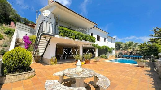 SEA VIEW This sumptuous property, offering breathtaking views of the sea and mountains, is located in the prestigious Serra Brava urbanization. This coveted community boasts a supermarket, a restaurant with access to a communal pool, and various sports fields. The house, with a built area of 192 m² on a total plot of 742 m², is only 2.5 km from the splendid Cala Canyelles beach.~~The residence is spread over two levels. At the entrance, a hall leads to a spacious, bright living-dining room with a fireplace, opening onto a balcony with stunning sea views. The kitchen is fully equipped. The main level also includes three bedrooms, one with an en-suite bathroom, and two others sharing a bathroom.~~On the ground floor, a second kitchen complements the space, along with two bedrooms and a bathroom.~~A large covered terrace extends to a magnificent heated saltwater pool, offering spectacular views of the sea. The property also includes a barbecue area, ideal for outdoor events, and a garage that can accommodate two vehicles.~~Do not hesitate to contact the Kaylam Realty team for more information or to schedule a visit. We are at your disposal to answer all your questions and assist you in your real estate project.~