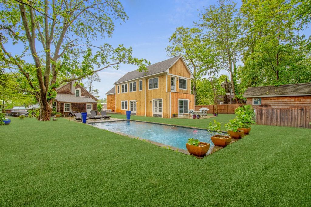 Newly complete in the historic district, a breezeway connects the cottage to a new house, offering 2000 +/- of living space. Set on a substantial .35-acre lot, the fully- fenced backyard features a new gunite pool, pool shed, and patio that is perfect for outdoor dining and entertaining. Inside offers tremendous versatility. The first floor has an open floorplan with crisp white interiors. A double-height great room opens to the kitchen and dining area that overlook the backyard and patio. Upstairs there is an ensuite primary and balcony overlooking the backyard, as well as 2 guest bedrooms with an adjoining bathroom. Laundry is conveniently located on each floor. The location offers a fantastic lifestyle, 0.7 Miles to Main Street, with a couple dozen high-end restaurants and bars, boutique shops, and renowned Bay Street Theater and Sag Harbor Cinema. The homes upgraded amenities include Central A/C and Central Vac.