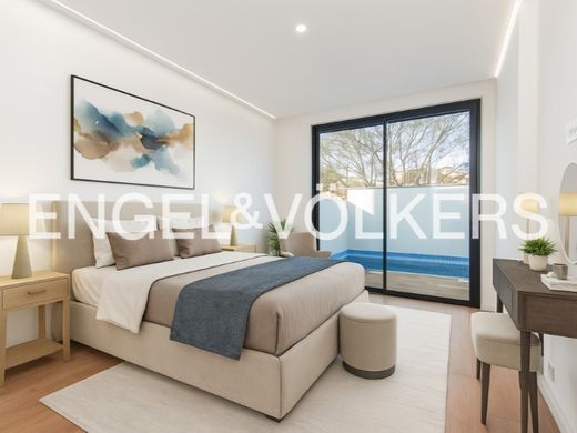 Security and privacy are ensured with an armored front door and a sectional garage door finished in corten steel. A standout feature is the private swimming pool, constructed with concrete and iron, perfect for enjoying the Algarve sun.
