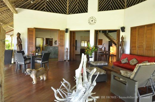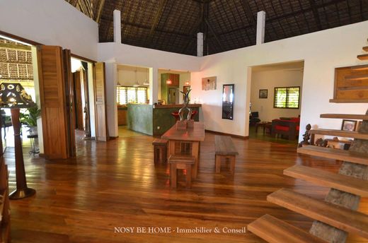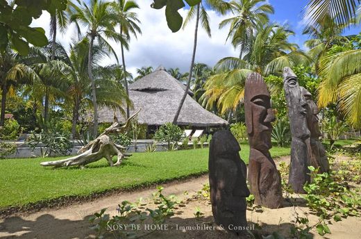 Exclusive to NOSY BE HOME - REAL ESTATE & CONSULTING, this luxurious tropical villa with a pool is nestled on a lush 1,299 m² plot. The property features an impressive 60-meter-wide beachfront, perfectly positioned to capture stunning west-facing sunsets.