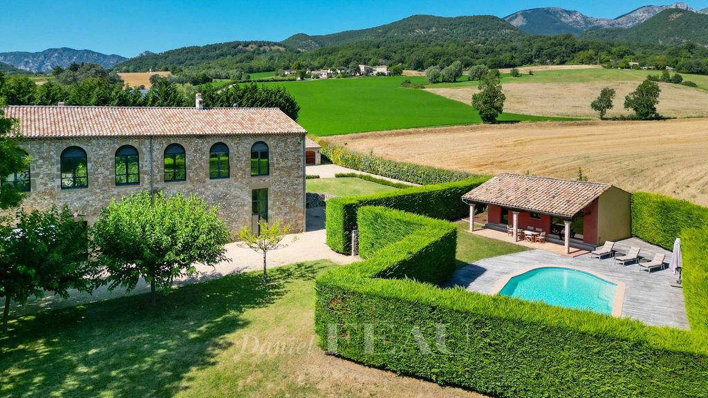 This charming and peaceful 473 sqm fully furnished property set in over 4000 sqm of low-maintenance grounds is located in the Roubion Valley near the Saou and Couspeau mountains between the Drôme Provençale and Vercors areas.