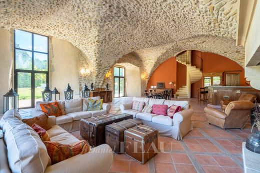 Renovated in 2003, it includes a 120 sqm living/reception room featuring a monumental fireplace, a spacious kitchen/dining room with a fireplace and a Lacanche range, six bedrooms including a suite with a bathroom and a terrace, a shower room and a bathroom.