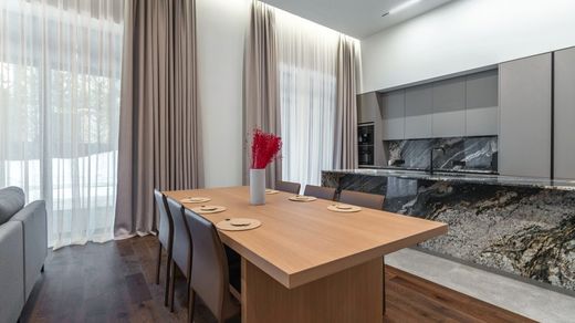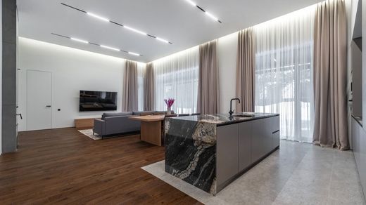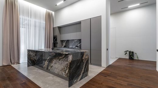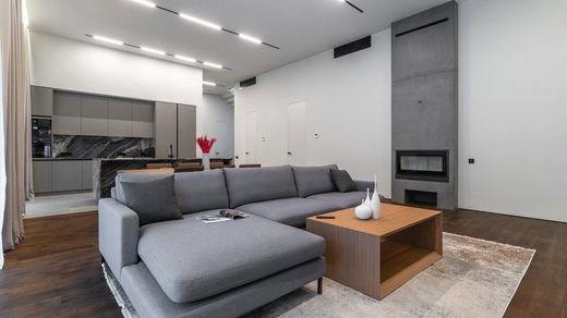 Object number: 023375. A house on Rublevo-Uspenskoe highway, 7 km from Moscow, in a place called Podushkino, is offered for sale. The house is 2-level, brick (area - 500 sq.m.), located on a land plot of 15 acres. There is a canopy for 2 cars. Finishing - turnkey. On the ground floor: living room-dining room-kitchen with fireplace and access to the terrace, bedroom with bathroom and dressing room, guest room with kitchen and bathroom, staff room with kitchen and bathroom, sauna-hammam with shower and relaxation room, laundry room, boiler room, bathroom, hallway, cloakroom, canopy for 2 cars. On the second floor: master bedroom with bathroom and dressing room, bedroom with dressing room, bedroom with dressing room, bathroom. TWEED Real Estate is a member of the AREA association.