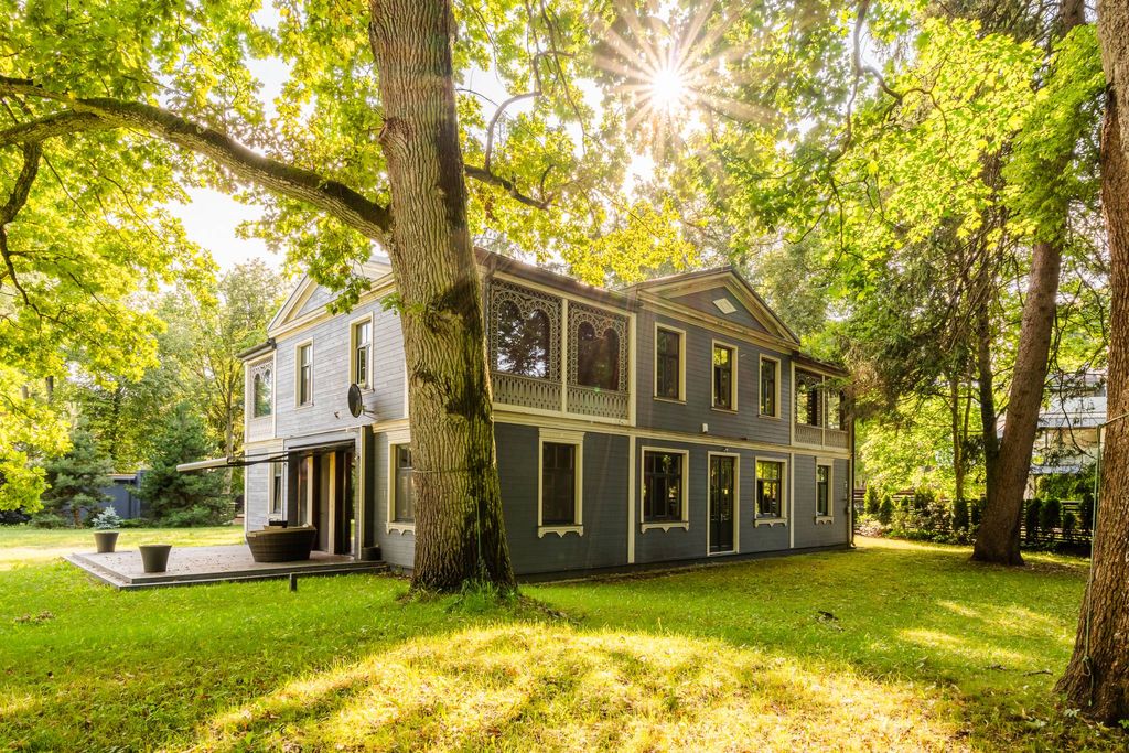 We offer the opportunity to purchase a newly built and well-maintained private house in Dubulti, just 100 meters from the sea. The house was completed and put into operation in 2015, preserving the original facade design. The property is located on a fenced, landscaped 2087 m² area, which includes a garage for two cars and a utility room. The total area of the house is 365 m², with an additional 30 m² outdoor terrace. Layout: The first floor features an entrance hall, technical room, laundry room, kitchen with dining area and access to the terrace. There is a spacious hall with high ceilings. Additionally, there is a separate guest bedroom with its own bathroom, a relaxation area, and a sauna with a pool. On the second floor, there are four bedrooms, three of which have en-suite bathrooms, as well as an office, a wardrobe, and a utility room. Communications: City water supply and sewage. Electricity used for heating through underfloor heating on both floors. Wooden sash windows with double glazing and carved wooden ornaments. Nearby, you will find several restaurants, small shops, and a well-maintained beach.