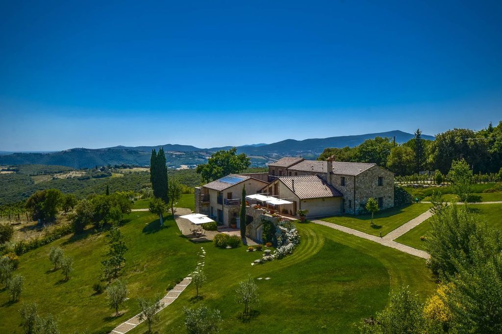 Nestled amid the picturesque hills of Val D'Orcia and surrounded by the vineyards of Montecucco, stands a prestigious residence within a stunning 1.5-hectare fully fenced park. This enviable location offers quick access to the region's major historical, artistic, and natural attractions, with the sea and Maremma Park reachable in just 30 minutes.