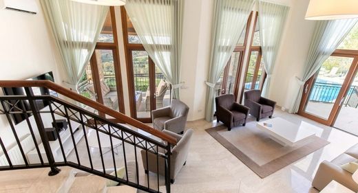An opportunity to acquire a stunning four bedroom villa with light, modern interiors and wonderful outdoor space which includes a private infinity edge pool and a pagoda that offers breathtaking views over neighbouring Secret Valley Golf Course. The outside space has recently been renovated and now boasts a brand new built-in BBQ area, a hot tub, and a wooden pagoda that stretches out of the garden, offering a really great space from which to enjoy sundowner drinks or chill-out time in the shade of the day. The views from the pool and the pagoda are some of the best on the resort, reaching right over the remarkable Secret Valley golf course out to sea. The surrounding area is very peaceful and there is a wonderful feeling of tranquillity as you soak up the views. These views are not lost inside; the bright, modern interiors also have large windows through which the views pour in. All four of the bedrooms are en-suite: three of the bedrooms are situated on the ground floor and one in the cooler basement level. The spacious master double bedroom has an ensuite with spa bath and overhead shower, as well as a walk-in shower unit. This room shares a balcony with the second double bedroom (which is en-suite with walk-in shower) on this level, overlooking Secret Valley. The third of the rooms on this level, the twin room, has a private balcony and en-suite bathroom with walk-in shower. Downstairs hosts the well equipped family kitchen, and beautiful dining area with stairs leading down to the large living space. The living area is a tall, open space with a real sociable feel. The patio doors that run the length of the living area open up to the upper outside terrace where there is comfortable seating and a dining table and chairs. The views from the terrace and living area are stunning. There is air-conditioning units and central heating. Downstairs, in the cooler basement level, you will find a lovely double room, which opens out to the lower terrace and lawn. This room also has an en-suite bathroom, with a walk-in shower.