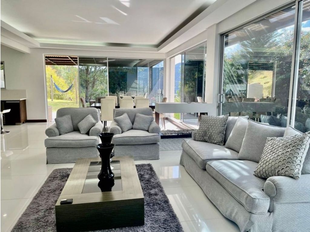 TRADITIONAL RENT 15,000,000 SALE 2,350,000,000 This impressive house for sale and rent in El Retiro offers you a life of luxury and comfort in a tranquil setting. With two levels and 435 m² of built space on a 1,400 m² lot, this property is a jewel of design and functionality. It has five bedrooms, seven bathrooms and space for five vehicles, making it a spacious retreat for the whole family. Details such as closets, a maid's room and an open, integral kitchen add a touch of elegance. The common areas include a beautiful garden, 24-hour security, a children's area and green areas so you can enjoy the natural beauty that surrounds you. This is a unique opportunity to live in a house that has it all.