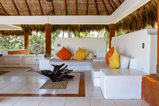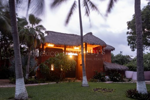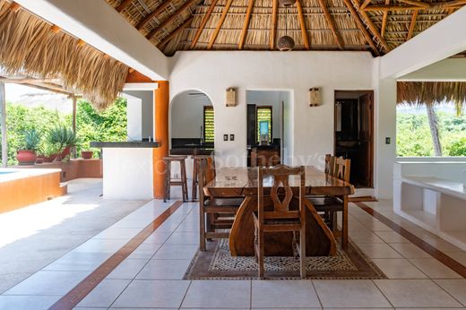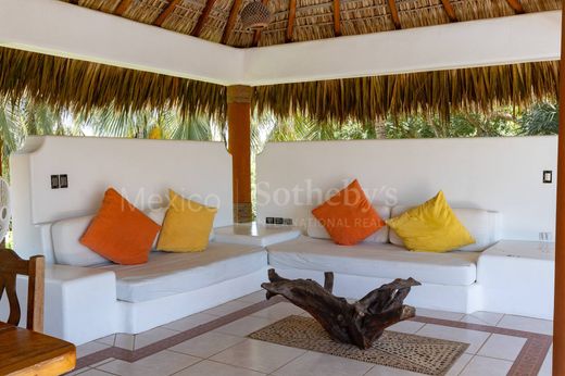 Beautiful house in Costa Cumaná, one of the most exclusive and safe condominiums in Puerto Escondido. Located on the second line of the beach, Casa Oliva is like living in a small private paradise. The house is distributed on 2 levels to see the sea from La Paz from the terrace. The house is built with double concrete walls, making it a home that is super resistant to any weather change. We are welcomed by a large garden full of palm trees, a stone path to enter a TV room overlooking the garden; Also large bedrooms with full bathrooms. Terrace and an overhanging pool. Also a cellar and laundry area. On the upper floor, an outdoor social area, with a palapa roof, an open equipped kitchen with a granite bar, a dining room, and a living room with a large terrace.