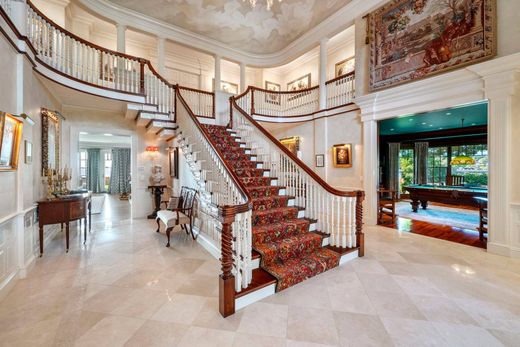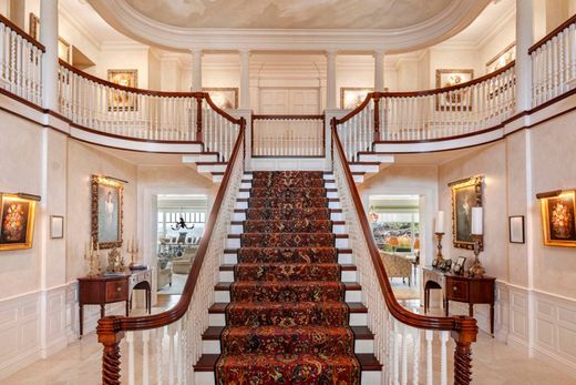 This magnificent oceanfront estate stands as one of the most significant properties in Marblehead. Located in the exclusive Peach’s Point neighborhood, this property offers stunning views of Crowninshield Island, Grace Oliver’s Beach, Marblehead Lighthouse, and the surrounding islands. “Seaside Farm” replaced the original Crowninshield estate in 1999 in a classic Georgian style, with meticulous attention to detail throughout. The home is designed to maximize ocean views while maintaining privacy.The grand 2-story foyer with a custom staircase sets the tone for the home, which features elegant living spaces ideal for both daily life and entertaining. The second floor includes an oceanfront primary suite with a fireplace, walk-in closet, modern bathroom, and a private deck with exceptional views. Three additional en suite bedrooms, a large office, and a laundry room complete the second floor.Caretakers 1 bedroom apartment over 4-car garage offering views of Grace Oliver's Beach and cove.