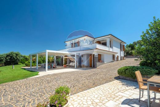 The property stands on a land of 11,000 square meters completely fenced in masonry of an average height of 250 cm, with ancient olive trees, flower beds with dry stone walls, park with lawn for a total of about 3000 square meters, well, automatic watering system, barbecue and wood oven, basalt pedestrian for over 2500 square meters, the whole property is illuminated with low consumption and LED lights.