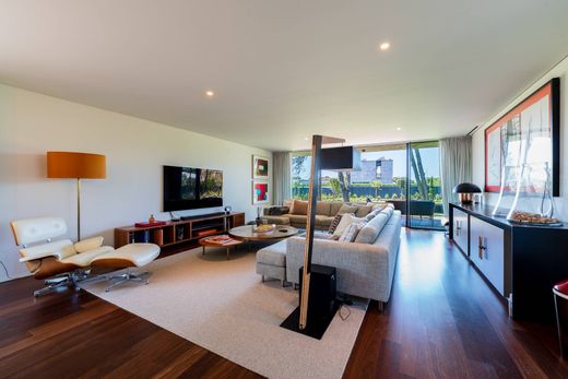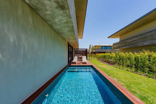Contemporary villa with four bedrooms and a total area of 331 square meters, set on a 937-square-meter plot with a private swimming pool and garden, located in the prestigious SandWoods condominium in Cascais. This exclusive condominium offers a concierge service during the week and 24-hour security, 365 days a year, ensuring exceptional comfort and peace of mind. Distributed over three floors, the property combines modern architecture with premium finishes. The ground floor features a spacious 58 m² living room, a fully equipped kitchen with top-of-the-line appliances, a laundry area, and a guest bathroom. Outside, an 828 m² garden and a 30 m² deck surround the private pool, ideal for family leisure moments. The upper floor comprises a master suite with a walk-in closet and full bathroom, two additional suites with built-in wardrobes, and an additional complete bathroom. All bedrooms have direct access to a 51 m² balcony overlooking the garden, offering natural light and comfort. The basement includes a storage area and an 88 m² garage with space for three or more vehicles. This villa integrates state-of-the-art technological solutions: KNX home automation system for lighting, blinds, and climate control, LED lighting, hydraulic underfloor heating and cooling with a heat pump, mechanical ventilation with heat recovery, and a heated pool with an automatic cover. The SandWoods condominium is surrounded by 88,000 square meters of nature, with only 23,000 square meters dedicated to residential areas. It offers two entrances, a communal swimming pool, tennis and basketball courts, a playground, and approximately 2 km of walking trails. It also provides visitor parking and a rainwater-based irrigation system, reinforcing its commitment to sustainability. Located in a privileged area, just 5 minutes from Guincho Beach, 4.5 km from the center of Cascais, 30 km from Lisbon, and next to two 18-hole golf courses, this property offers the perfect balance between nature, luxury, and urban proximity.