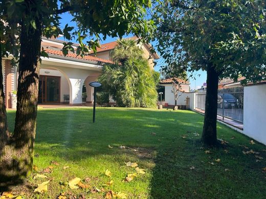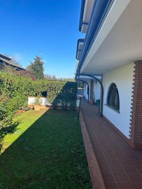 In a quiet and convenient area well served by the main communication routes, services and commercial activities, in the immediate vicinity with 2 entrances, one of which is from a private road, beautiful villa on 4 levels with private garden. House of approximately 430 square meters plus private garden of approximately 400 square meters, arranged on 4 levels connected by beautiful internal glass and brass stairs. Ground floor large living room with fireplace and dining area, eat-in kitchen, study (with the possibility of independent entrance), guest bathroom complete with bathtub and shower. First floor with 3 bedrooms in solid wood parquet all with walk-in closet and dedicated bathrooms (master suite with Jacuzzi tub) each with access to its own terrace. Second floor open space room (preparation for additional bathroom) with double exposure plus 2 terraces. The property is completed by the basement consisting of large tavern with windows, through fireplace, laundry area, service room, bathroom, multipurpose room with armored door, direct access to the garage with capacity for 8/9 cars. High-level finishes such as living area floors in Kashmir white marble, bathrooms made of pink Portugal marble, Carrara marble and Guatemala green, Vallespluga green Beole marble, Garofoli internal doors, central vacuum system. Independent heating and cooling. Anti-intrusion system, armored door.