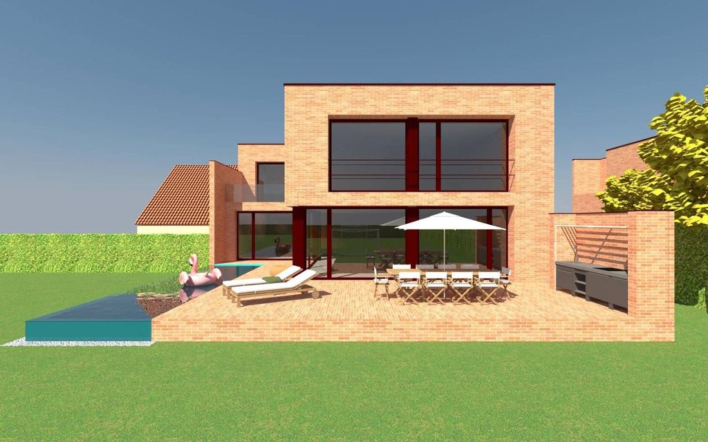 Head villa of 292 m2 habitable on two levels, outdoor living room of 103 m2, solarium roof of 169 m2, quadruple garage of 53 m2.