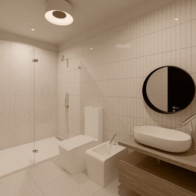 On the ground floor there is a spacious living room with kitchen and dining room in an open-space style, with access to a beautiful covered terrace. There is also one bedroom with a bathroom, a laundry room and a sauna with a shower.
