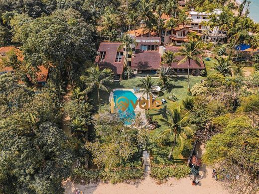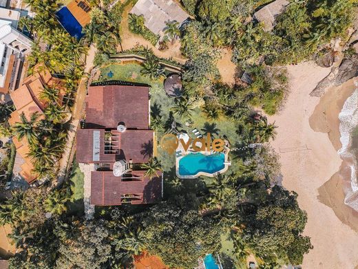 Magnificent house in the Domingas Dias condominium, with 3,000m² of land and 1,000m² of built area, located in a privileged location, with direct access to the sand and a stunning view of the sea. This cinematic house, designed to provide comfort and elegance, has five spacious suites with balconies that allow you to enjoy the fresh ocean breeze. Upon entering, you are greeted by two spacious living rooms, filled with natural light, thanks to the large glass walls that frame the panoramic view. The carefully designed wooden doors and windows add a touch of sophistication and warmth to each room, and one of the rooms has a delightful fireplace for colder days. The modern and functional kitchen is integrated into a bright dining room, perfect for moments of celebration with family or friends. A highlight is the charming winter garden, which brings an element of nature into the house, creating an ideal space to relax and enjoy. The house also has an elegant guest bathroom and a wooden staircase that connects the different levels of the residence with a touch of charm and rusticity. For greater convenience, there is also a caretaker's house, ensuring privacy and security. In the outdoor area, the swimming pool facing the sea is the perfect place to cool off, while the balconies invite moments of contemplation and relaxation. The kiosk with barbecue provides an ideal environment for delicious lunches and dinners outdoors, surrounded by a lush garden that stretches towards the sea. Each room in the house is equipped with air conditioning, ensuring comfort at all times. The lookout offers a privileged view of the beach, being a perfect place to enjoy the sunset or simply relax with a good book. With covered and uncovered parking spaces, this house combines beautiful architecture with all the necessary elements for a quality life by the sea. This is the dream home that awaits you! Schedule a visit and be amazed! Making your dream come true or a great investment is our goal!